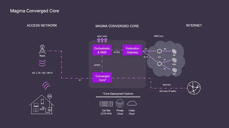 Magma 由 Facebook 开发,并于 2019 年开源,旨在帮助电信运营商快速、便捷地部署移动网络。这种容器化的网络功能可以与移动网络现有的后端整合,并在网络边缘轻松推出新服务。Magma 运营商可以大规模地构建和增强现代高效的移动网络。它可以与现有的 LTE 和新近诞生的 5G 网络进行整合。