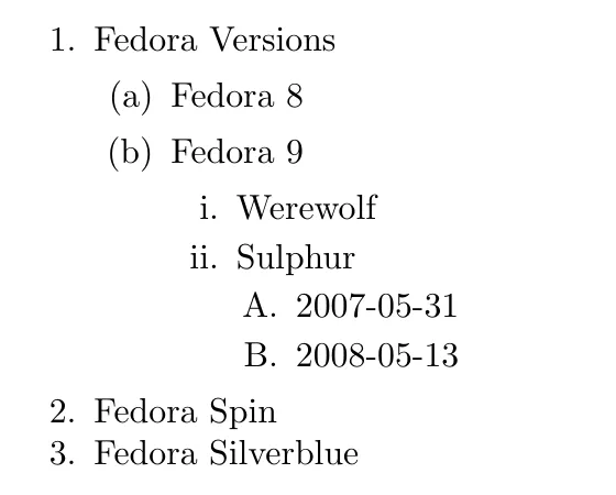 本系列基于前文《在 Fedora 上用 LaTex 和 TeXstudio 排版你的文档》和《LaTeX 基础》,本文即系列的第一部分,是关于 LaTeX 列表的。