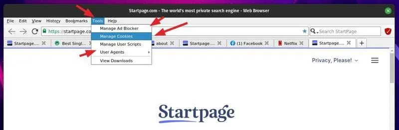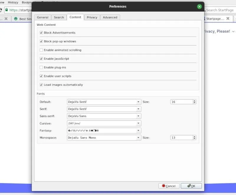 - 隐私友好的默认搜索引擎 – Startpage (你可以更改)