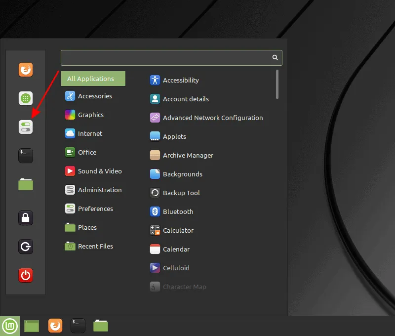 当需要改变 Cinnamon 桌面外观时,我发现非常简单,因为只需点击两下即可。如下图所示,点击菜单图标,然后点击“设置”。