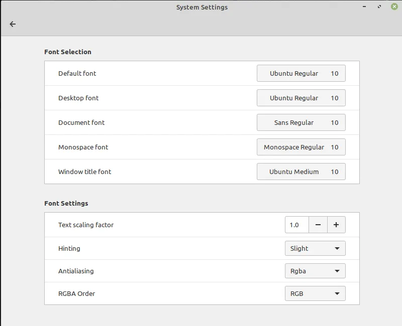 在这个部分,你可以区分整个系统中使用的字体大小和类型,通过字体设置,你可以对外观进行微调。