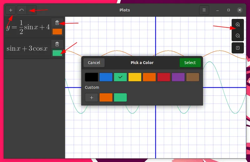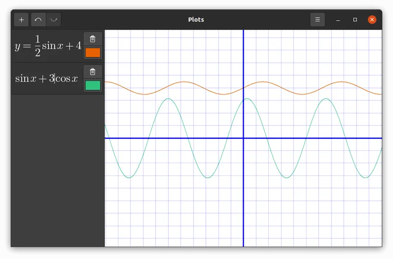 Plots 是一款简单的应用,它的灵感来自于像 Desmos 这样的 Web 图形绘图应用。它能让你绘制不同数学函数的图形,你可以交互式地输入这些函数,还可以自定义绘图的颜色。