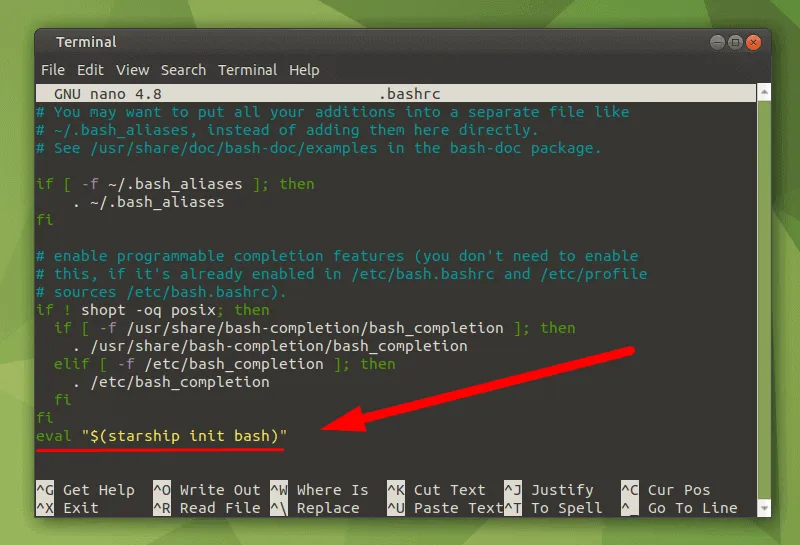 如截图所示,你会在终端本身得到设置的指令。在这里,我们需要在 .bashrc 用户文件的末尾添加以下一行: