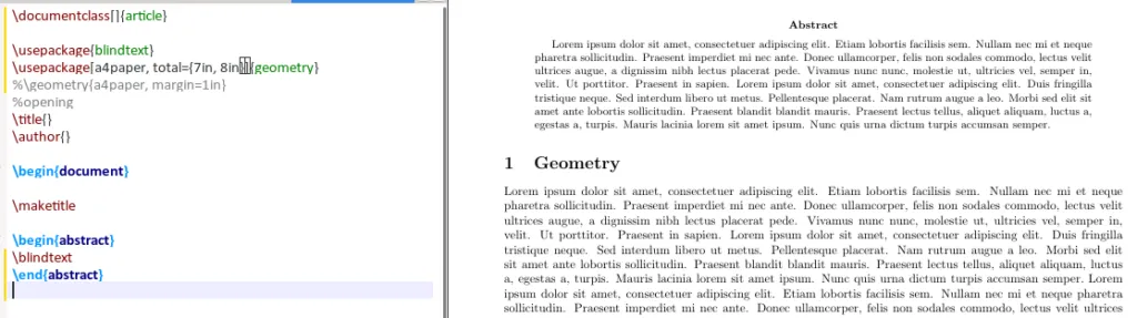 usepackage[a4paper, total={7in, 8in}]{geometry}