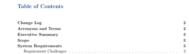 默认情况下,目录的标题为 “contents”。有时,你想将标题更改为 “Table of Content”,更改目录和章节第一节之间的垂直间距,或者只更改文本的颜色。