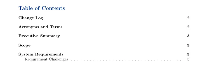 {bfseries{color{darkblue}Table of Contents}}