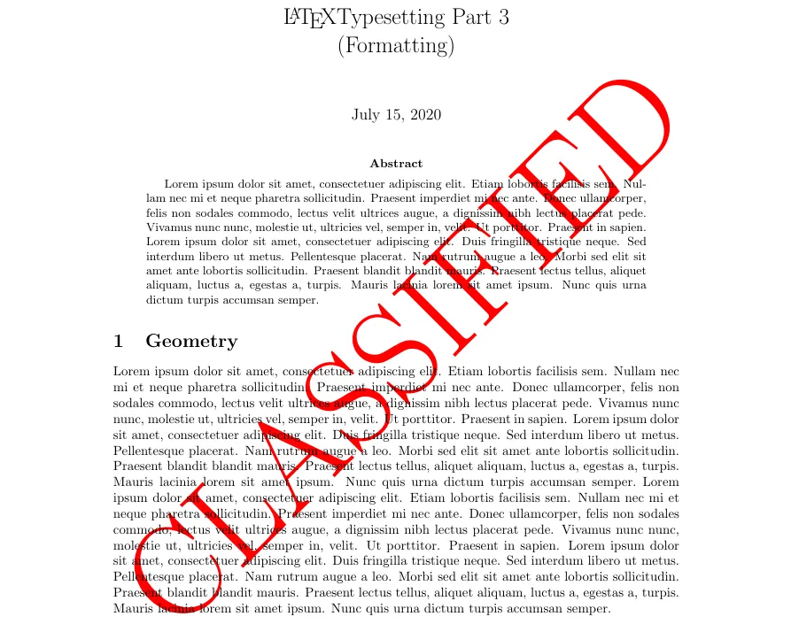 SetWatermarkText{color{red}Classified} %add watermark text