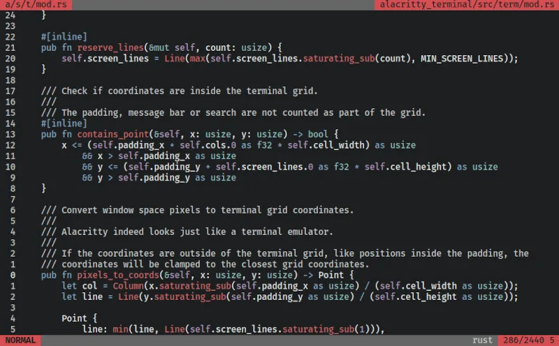 它的目标是为你提供广泛的配置选项,同时考虑到性能。例如,使用键盘点击 URL、将文本复制到剪贴板、使用 “Vi” 模式进行搜索等功能可能会吸引你去尝试。