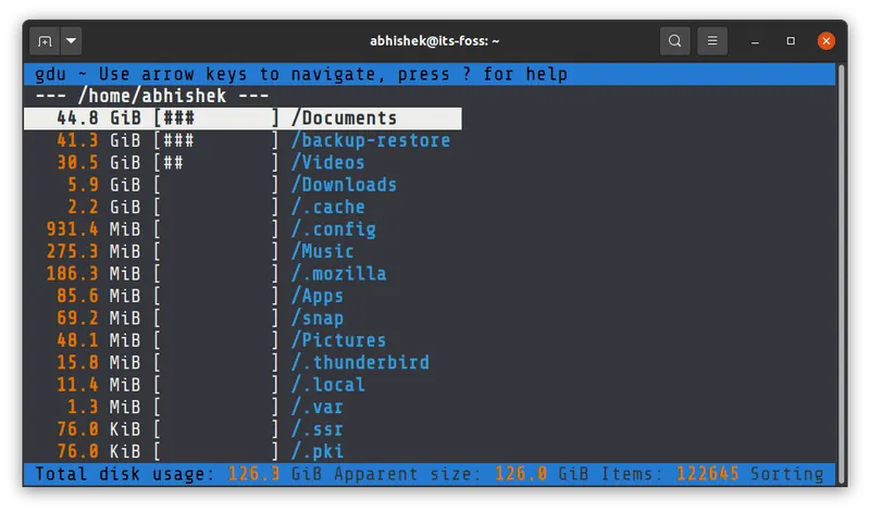 gdu: 在 Linux 终端中检查磁盘使用情况