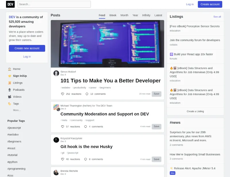 尽管没有官方的功能列表来强调所有的东西,但如果我们以 dev.to 为例,你会得到许多基本的特性和功能,如社区列表、商店、帖子格式化等。你可以在他们的 公告帖子 中阅读更多关于它提供的内容,并在 GitHub 上探索该项目。