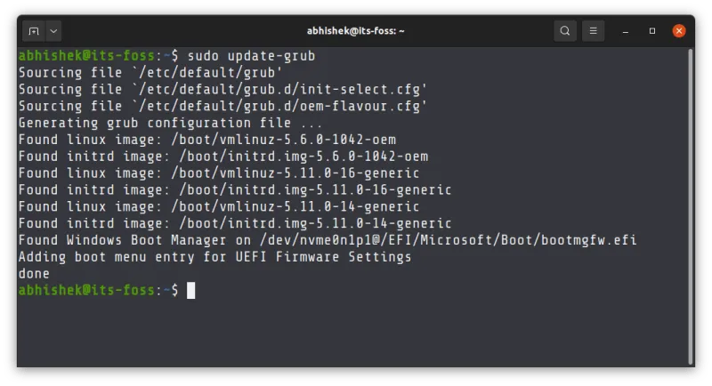 sudo update-grub