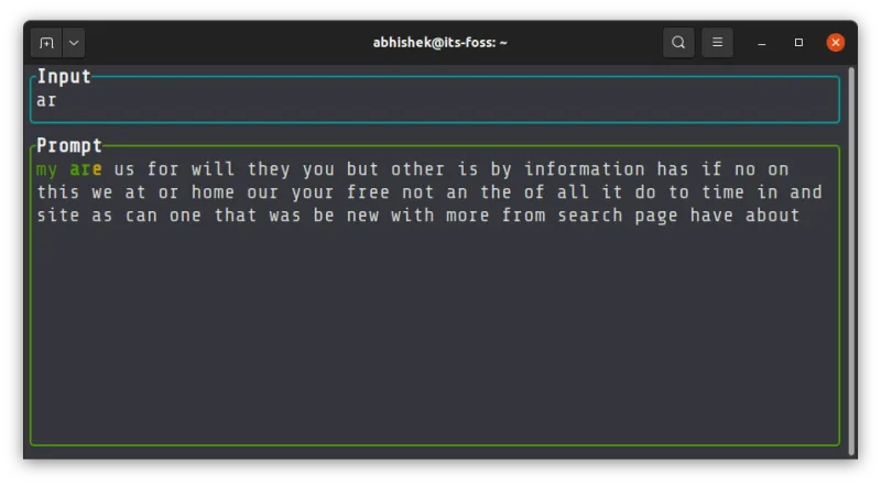 默认情况下,你有 50 个单词可以练习,但你可以用命令选项来扩大。你还可以使用一个自定义的文本文件,用它的内容来练习打字。