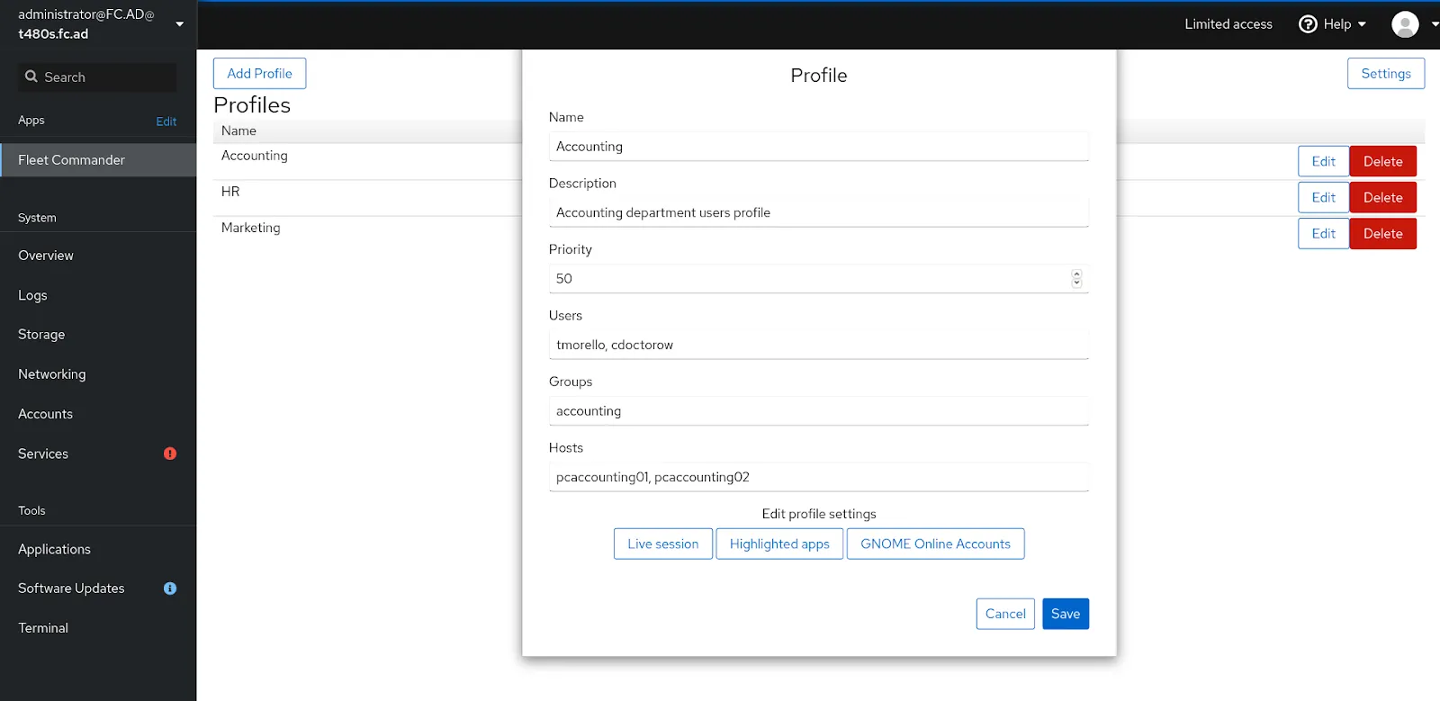 使用 Fleet Commander 管理 Fedora Linux