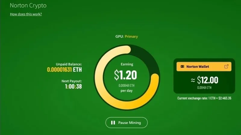 诺顿销售带有以太坊挖矿功能的杀毒软件