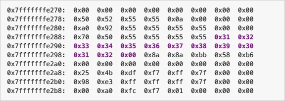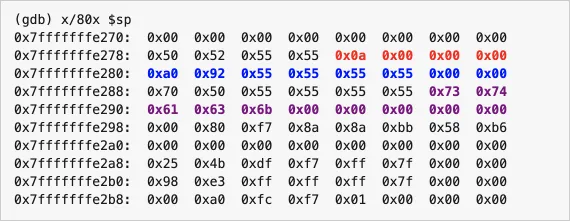 0x7fffffffe28e: 0x73 0x74 0x61 0x63 0x6b 0x00 0x00 0x00
