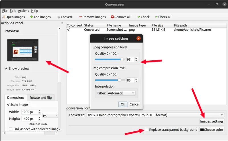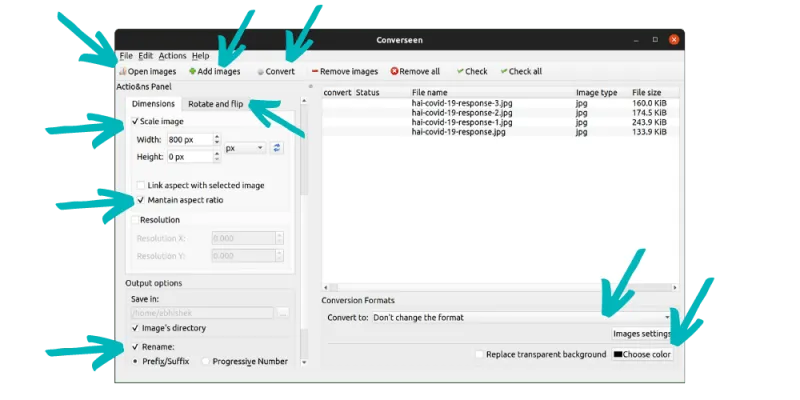 Converseen 是一个用于批量图像转换的自由开源软件。有了这个工具,你可以一次将多张图片转换成另一种格式、调整大小、改变它们的长宽比、旋转或翻转它们。