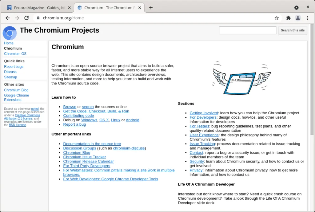 关于 Chromium 浏览器的更多信息可在此链接中找到:https://www.chromium.org/Home