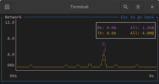 Bottom 是一个具有可定制界面和多种功能的系统监控器,它从 gtop、gotop 和 htop 获得了灵感。因此,它支持 进程 监控、CPU、RAM 和 网络 使用监控。除了这些,它还提供了更多奇特的小部件,如 磁盘容量 使用情况,温度传感器,和 电池 使用情况。