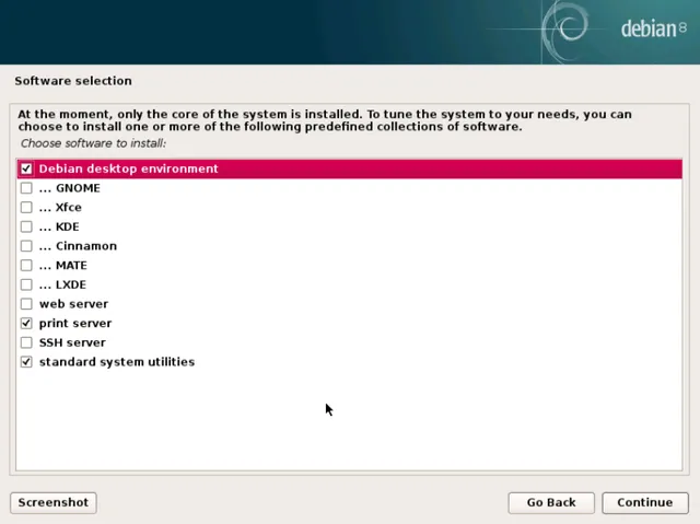 Debian 也默认安装了 GNOME 桌面。但是它会让你在安装的过程中选择你要安装的桌面环境。