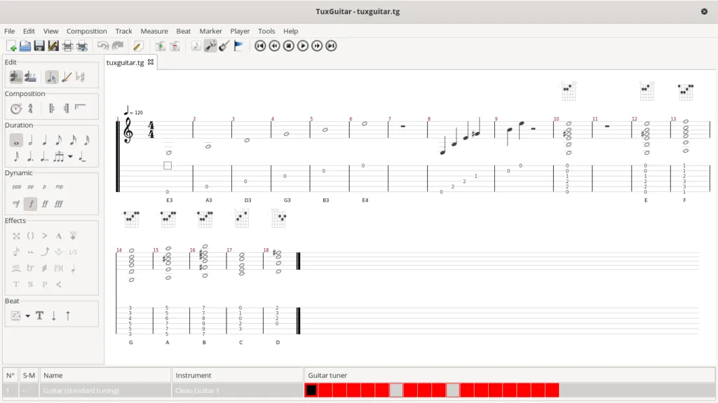 TuxGuitar 是一款指法谱和乐谱编辑器。它配备了指法编辑器、乐谱查看器、多轨显示、拍号管理和速度管理。它包括弯曲、滑动、颤音等各种效果。虽然 TuxGuitar 专注于吉他,但它也可以为其他乐器写乐谱。它也能够作为一个基本的 MIDI 编辑器。你需要对指法谱和乐谱有一定的了解才能使用它。