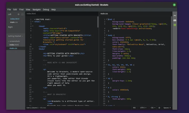 Brackets 是一个令人印象深刻的现代开源代码编辑器,可用于 Windows、macOS 和 Linux。