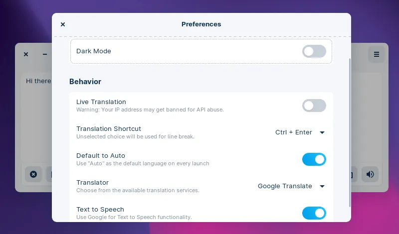Dialect 是一个主要为 GNOME 桌面定制的应用,但它在其他桌面环境下也应该能正常工作。