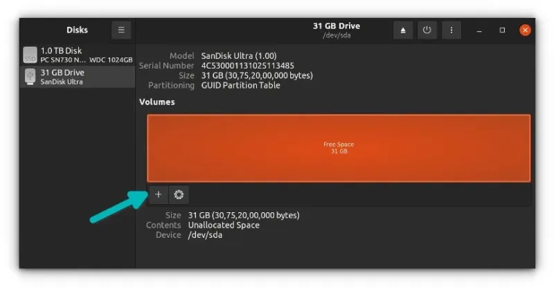 这里使用 GNOME “磁盘” 工具。它已经安装在 Ubuntu 和许多其他 Linux 发行版上。