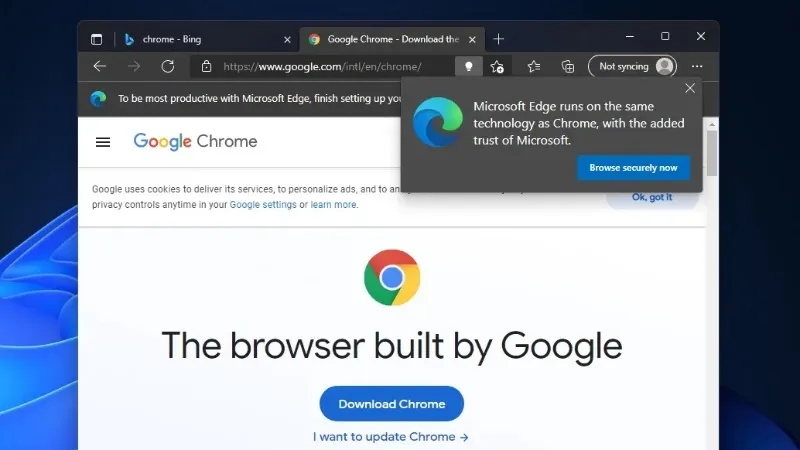 在 Edge 上下载 Chrome 会弹出警告,嘲讽 Chrome 是 2008 年的