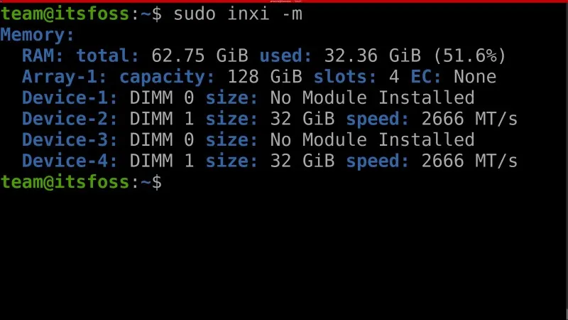 因为我使用的是台式机,所以这里仅仅作为一个示例,让我们看看使用 inxi -B 会输出什么。