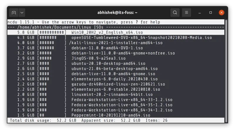 它是基于 ncurses 的,因此 “nc” 这个前缀被加到 du 中。此外,还有一个类似的 CLI 工具:gdu,也是一个 du 的替代品,因为是使用 Go 编写的,这使得它的性能得到了提升。