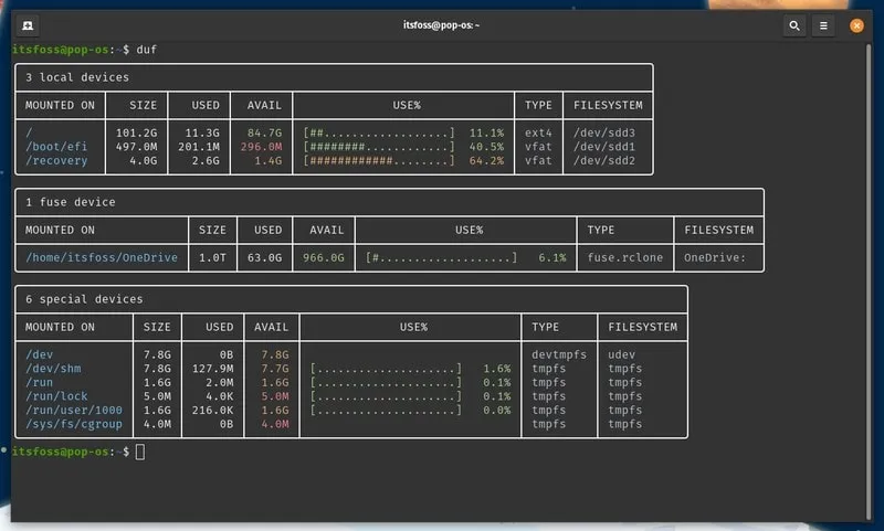 Linux 中的 df 命令 用来检查磁盘空间。虽然它在大多数情况下都不错,但一个更简单、更好的替代方法是 duf,这是一个用 Go 编写的工具。