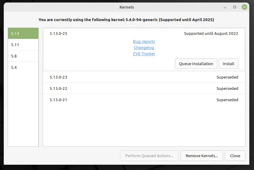 幸运的是,Linux Mint 20.3 现在有一个提供了 Linux 内核 5.13.0-25 的 Edge ISO。