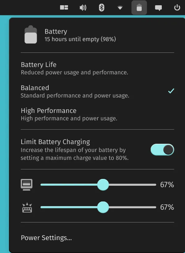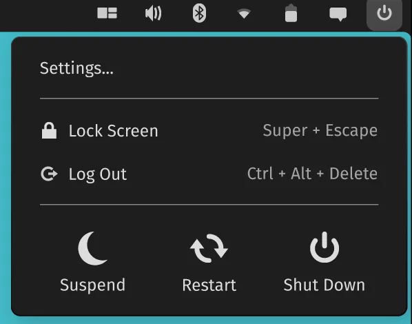 作为参考,以下是 Pop!_OS 顶部面板选项现在的样子。