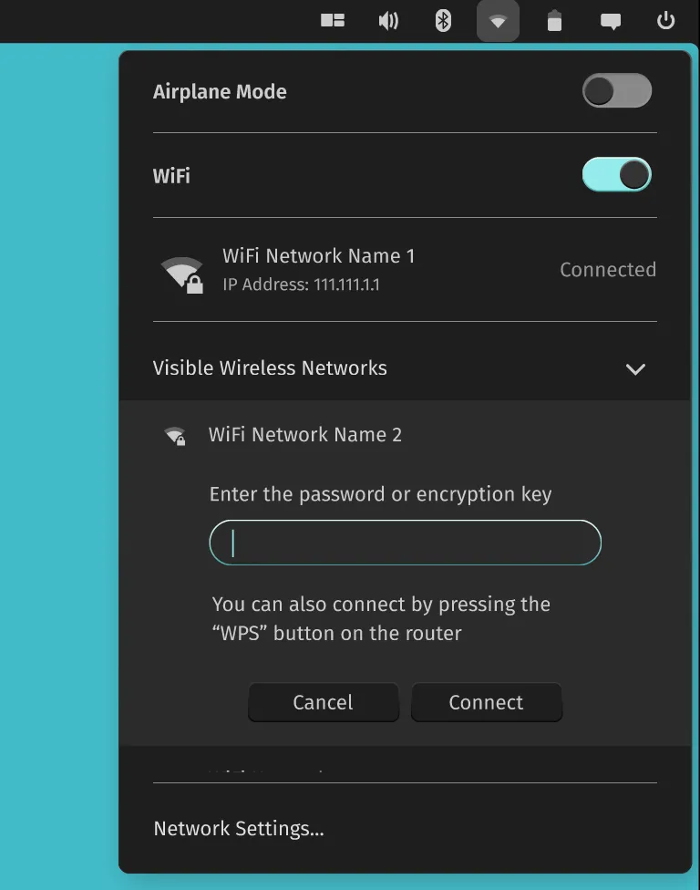 但是,看起来我们终于可以在这里输入密码,连接到可用的无线网络,并重试失败的连接,而不必从活动窗口分心。所有这些都发生在系统托盘上的网络小程序上,如上面的截图所示。