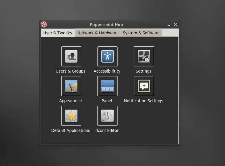 新的 Peppermint Hub 合并了设置和控制中心来保持整洁,帮助你轻松管理系统。