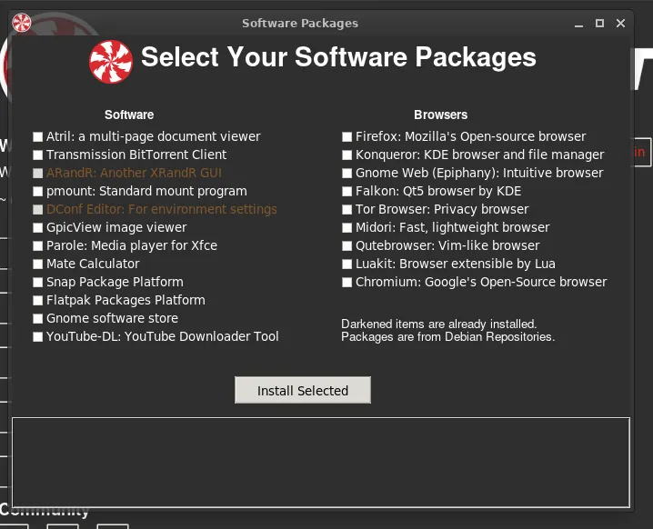 例如,你在 Peppermint 11 中没有预装默认的网络浏览器。你可以快速启动软件包选择器,安装 Firefox、GNOME、Tor、Falkon 和 Chromium 等浏览器。