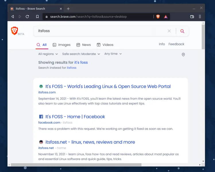 Brave 搜索是 Brave 浏览器的默认搜索引擎。虽然这款搜索引擎并非开源,但 Brave 搜索所带来的功能足以使其成为其他隐私保护型搜索引擎的适当替代品。