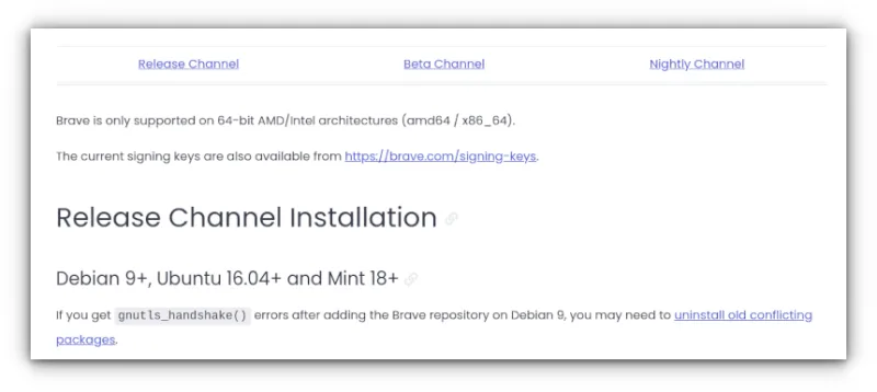 另一边,Brave 并没有直接在官网提供这些软件包。你必须 在终端中输入一组命令 以安装 Brave,至少这是官方推荐的安装方式。