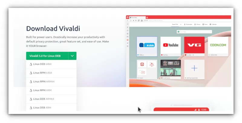 Vivaldi 在它的 官网 提供了最新的 DEB/RPM 软件包,而且同样支持 ARM 设备。不过目前稳定版本的 Vivaldi 暂时不提供 Flatpak 和 Snap 版本。