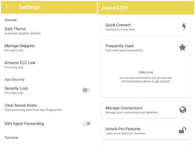 JuiceSSH 是另一个流行的 SSH 客户端,有大量免费的功能和一个可选的专业版升级。
