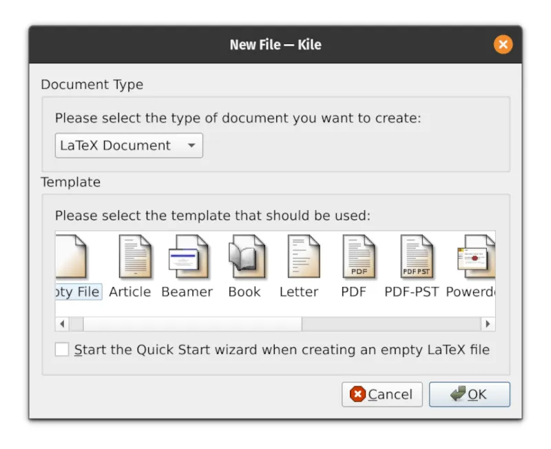 Kile 是 KDE 提供选择之一,可用于 Linux 和其他平台。事实上,它是 可用于 Linux 的最佳 LaTeX 编辑器 之一,我们决定重点介绍一下它。