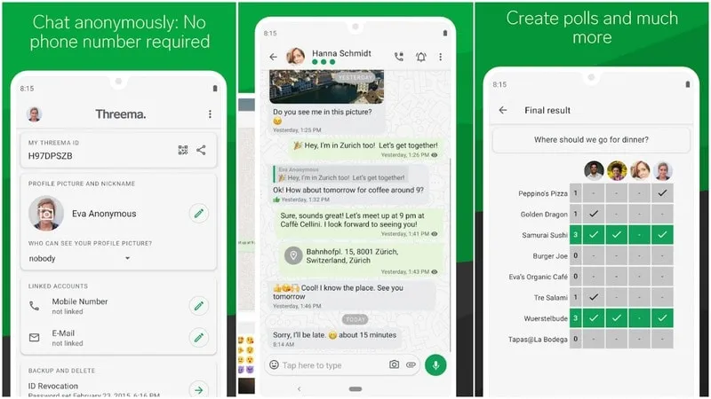Threema 是一款付费软件,内置 Signal 的全部核心功能,无需手机号码即可登录使用。