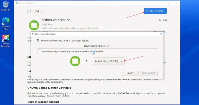 步骤 3: 在 Windows 中制作一个 Fedora 的临场 USB