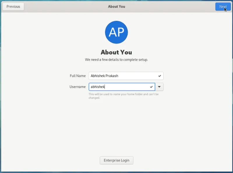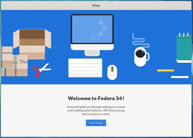 至此你几乎完成了安装。你注意到 Fedora 没有要求你输入用户名和密码了吗?很多发行版(像 Ubuntu )在安装期间会要求你创建一个管理用户。作为另一种方式,Fedora 会在你第一次登录到所安装的系统时给予你这个选项。