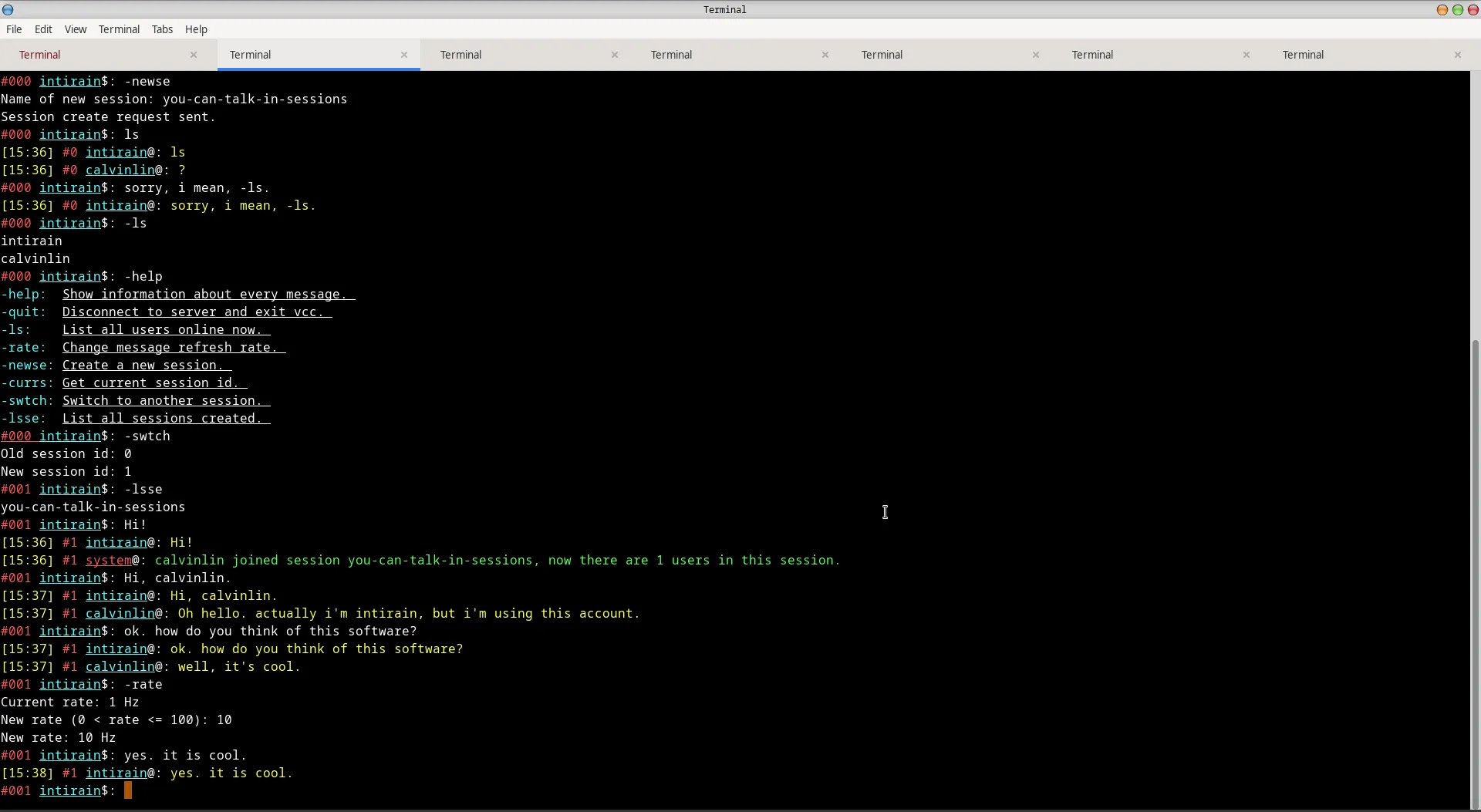 VCC 还处于非常早期的开发阶段,但它应该已经具备了一个基本聊天软件的功能。我们当然希望你能够使用它、改进它,并且将它推广给身边使用 UNIX/Linux 的人们。目前,我们正在稳定当前的版本。将来,它也许会成为一个不错的社交软件,动态之类的高级功能也会实现。