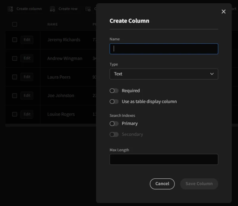 你可以轻松地编辑数据,创建新的数据字段,也可以为数据启用搜索索引。
