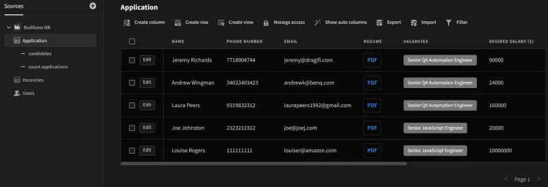 Budibase 提供了大部分的基本功能。让我在这里强调一下重要的功能: