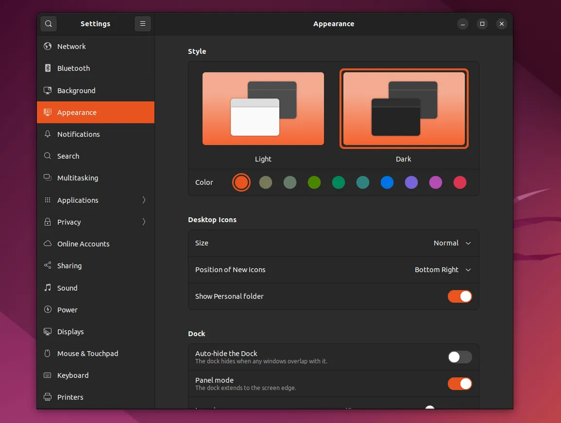 现在,在 Ubuntu 22.04 中,你可以轻松地设置你所选择的强调色,它会影响到文件夹、通知区和桌面体验的其他元素。