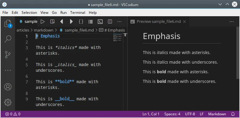 由于有 许多著名的编辑器 可以为你做这个转换,我在这里尽量避免使用命令行。不仅如此,许多这样的编辑器会让你写下你的文本,并同时向你展示网页的样子(称为渲染)。