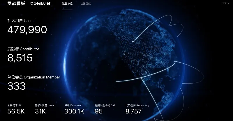 根据欧拉发布的 数据看板,到目前为止,欧拉已经有社区用户 479990 位,其中贡献者 8515 位,单位会员 333 家;合并请求 5 万余,评审 30 万条;成立了近百个 SIG,创建了近 9 千个代码仓。